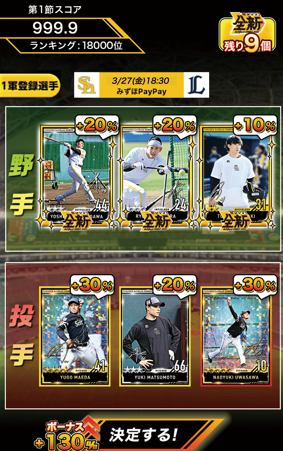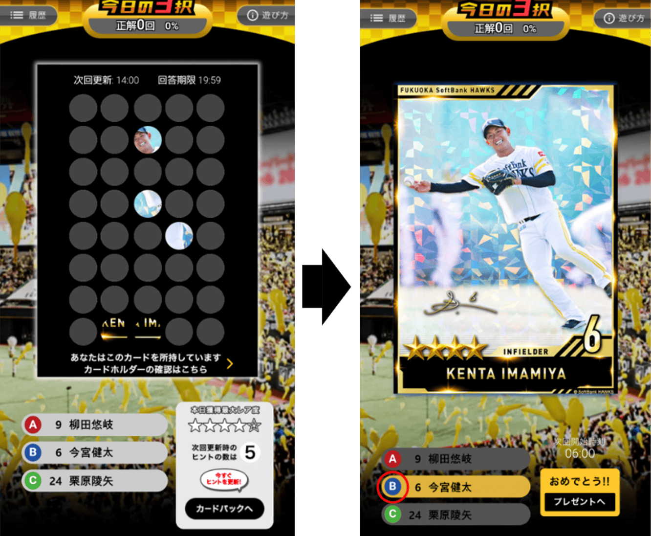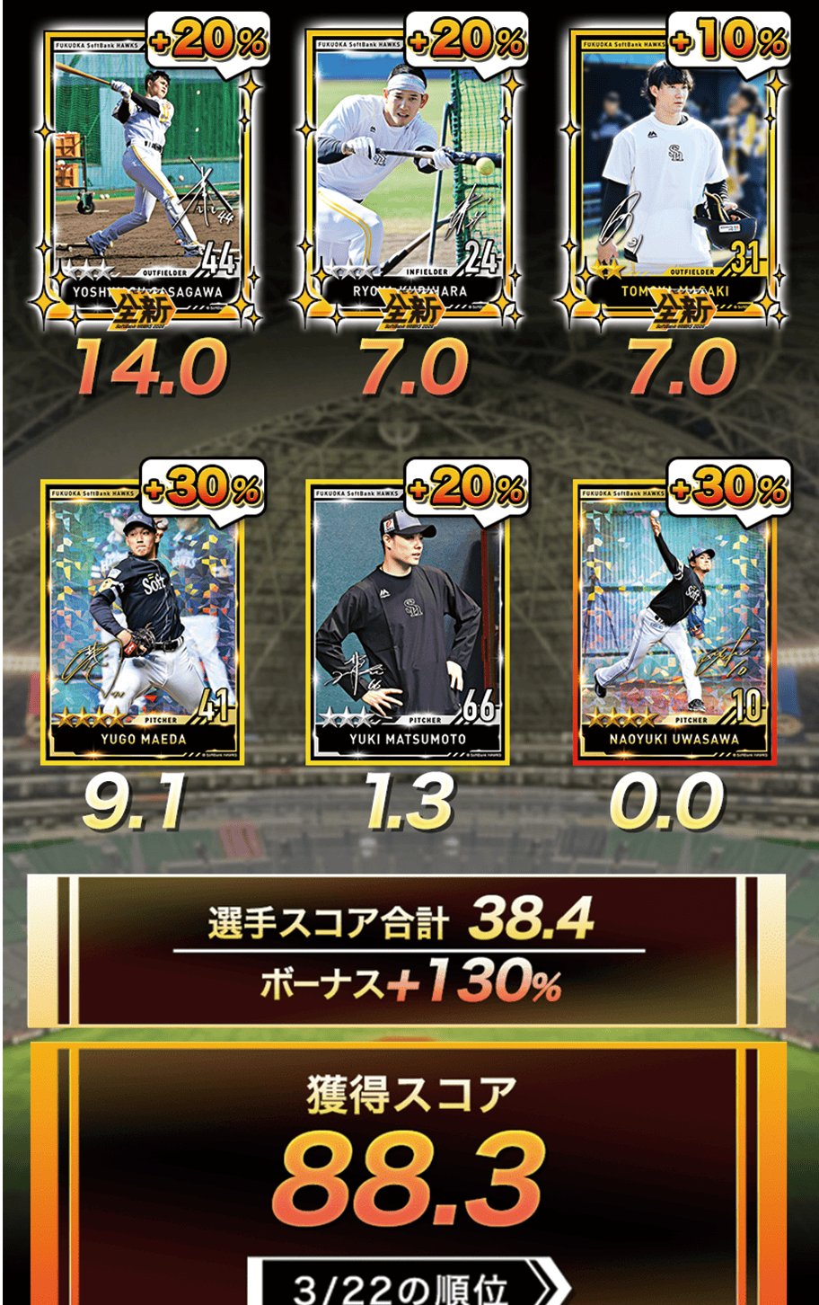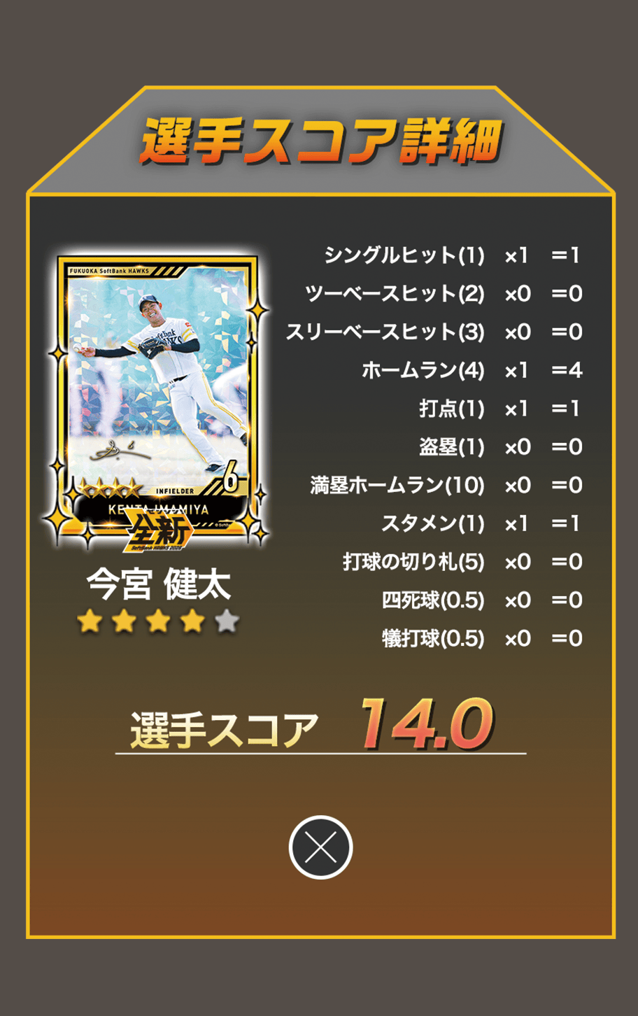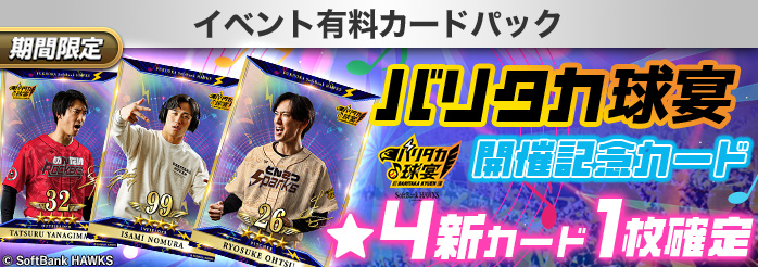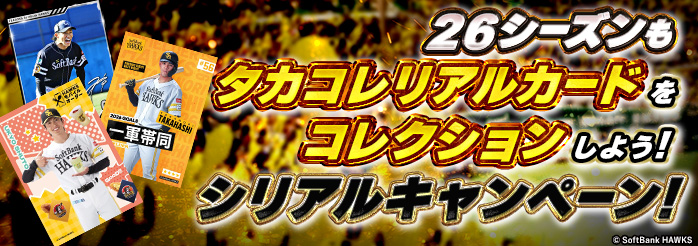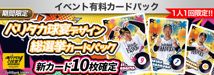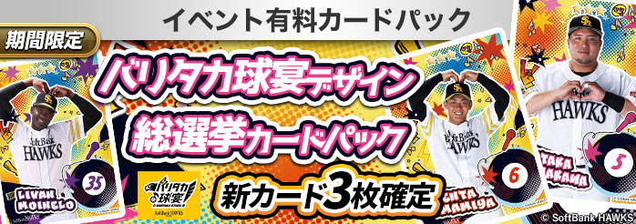 福岡ソフトバンクホークスの各選手のプレイシーンがカードになりました。お気に入りの選手のカードをたくさん集めましょう!